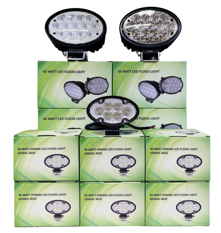 4 pieces of led13x5-0651 Floods for outer upper cab, 65W Osram LED, 5.2A draw, 5220 lumens each, correct plugs for plug and play.
